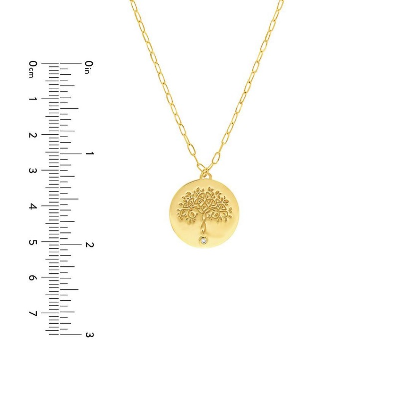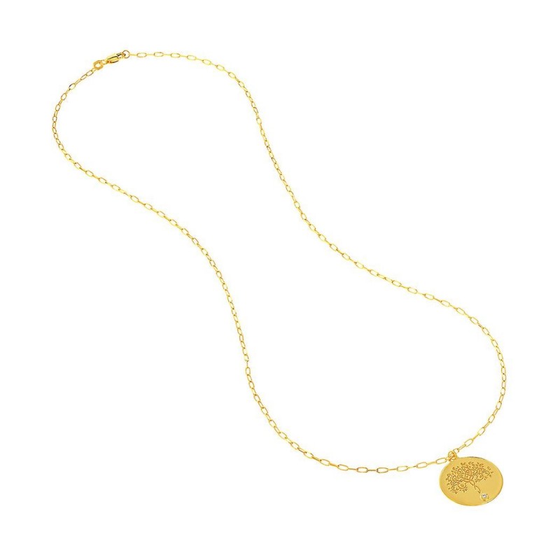 Collana regolabile in oro giallo 14k con ciondolo a forma di albero della vita con diamanti da 0,015 carati - 22 pollici - in oro giallo 14k - Scatola portagioie pronta da regalo inclusa ::: ::: [ Cura e gestione: Diamante ] - Pulire con acqua tiepida e sapone e una spazzola morbida o un panno. :::