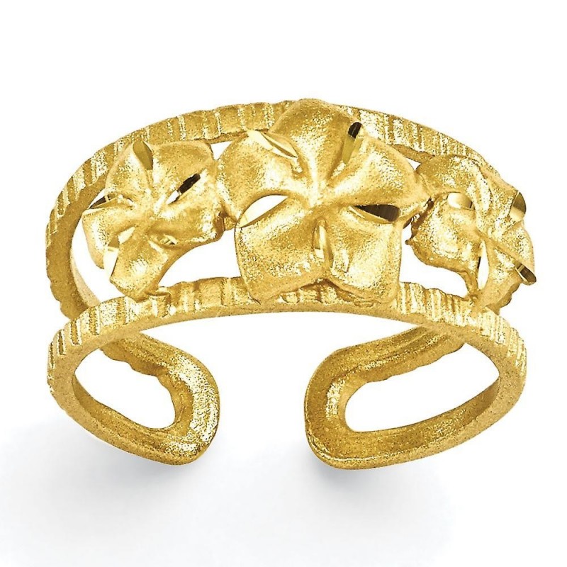 Anello per dita dei piedi in oro giallo 14k con plumeria - 1,8 grammi in oro giallo 14k - Attributi del prodotto: - Taglio brillante - Satinato - Scatola portagioie pronta per il regalo inclusa - Larghezza della fascia: 3-8 mm (rastremata) - Caratteristica: Solido -